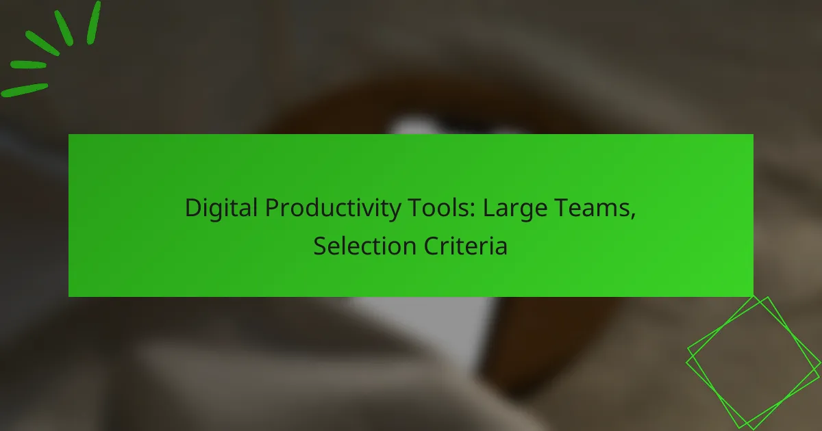 Digital productivity tools are essential for large teams, as they facilitate collaboration, streamline communication, and enhance project management. When choosing the right tools, it’s important to assess the team’s specific needs, ensure compatibility with existing systems, and prioritize user experience to maximize efficiency and alignment among team members.